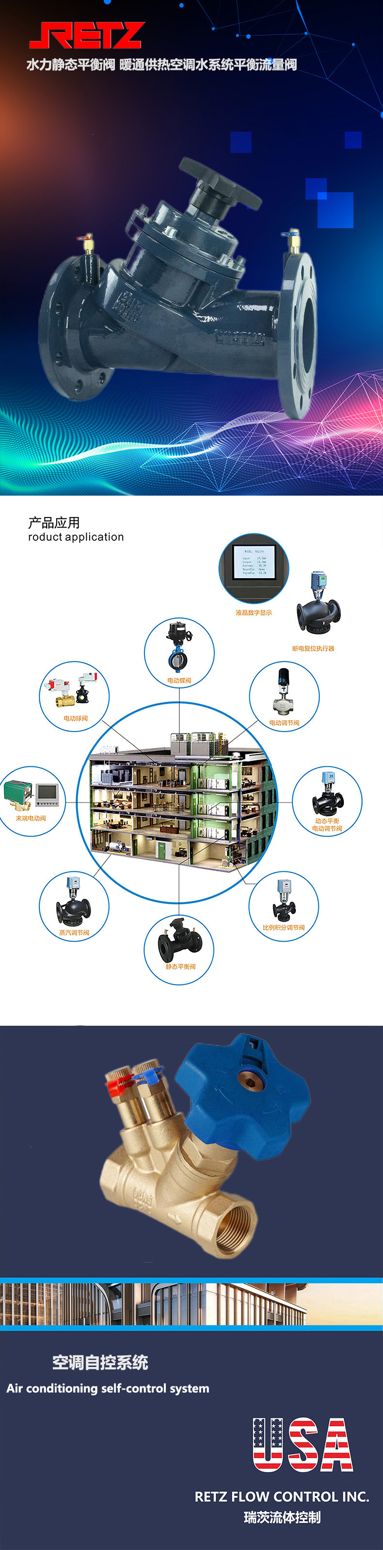 RETZ水力静态平衡阀应用于可应用于空调、供热及生活热水系统中的供水或回水管路。具有大行程锁定功能、关断功能,可代替截止阀
