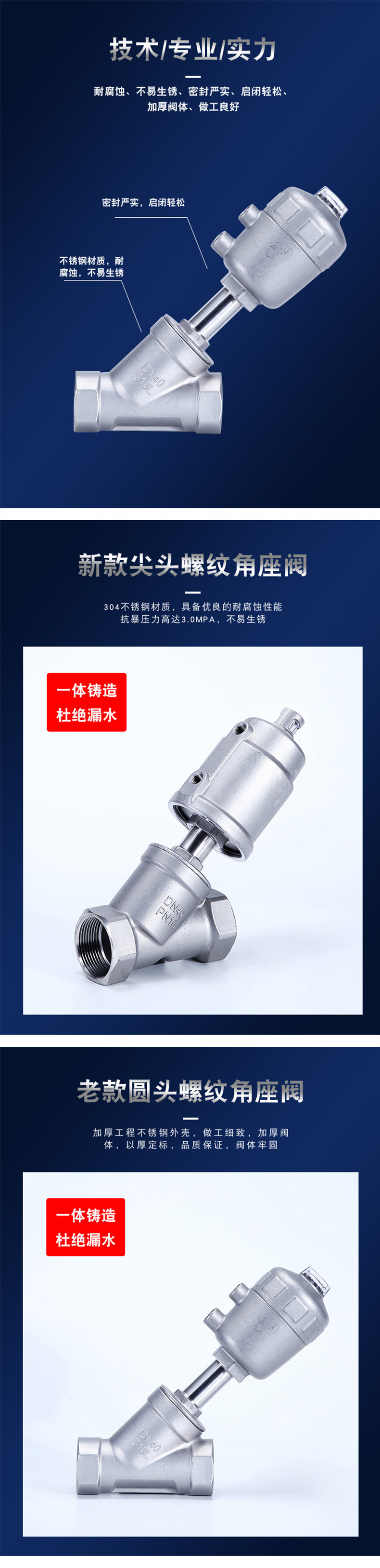 丝口全不锈钢气动角座阀产品简介/PRODUCT INTRODUC