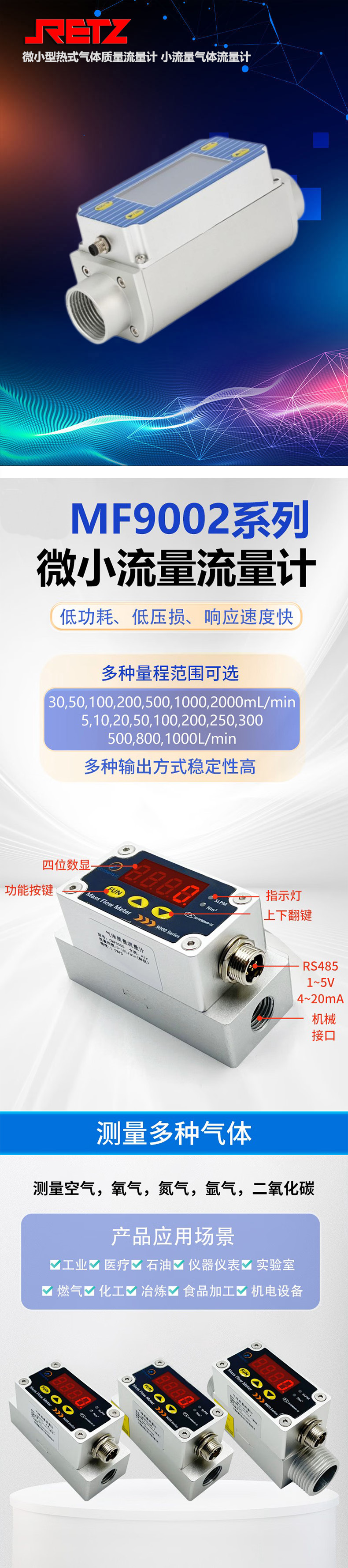 适用于空气、氮气等干燥洁净无腐蚀性气体(易燃易爆炸气体除外)的质量流量监测。已被广泛应用于工业生产、高校科研、消防、环境监测、烟草、智慧农业、食品、医药等行业