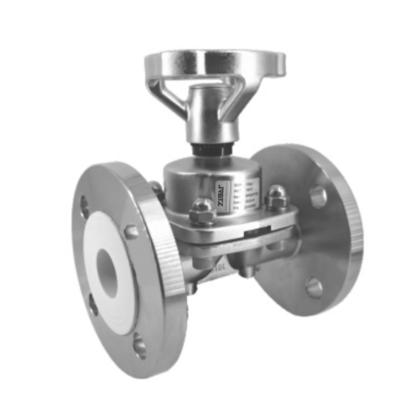 卫生级气动衬氟隔膜阀通过手轮旋转带动阀杆上下运动,控制阀门隔膜片的开启、关闭;优良的隔膜系统无死角区域,易清洗,符合卫生要求;阀门安装长度符合≤3D要求