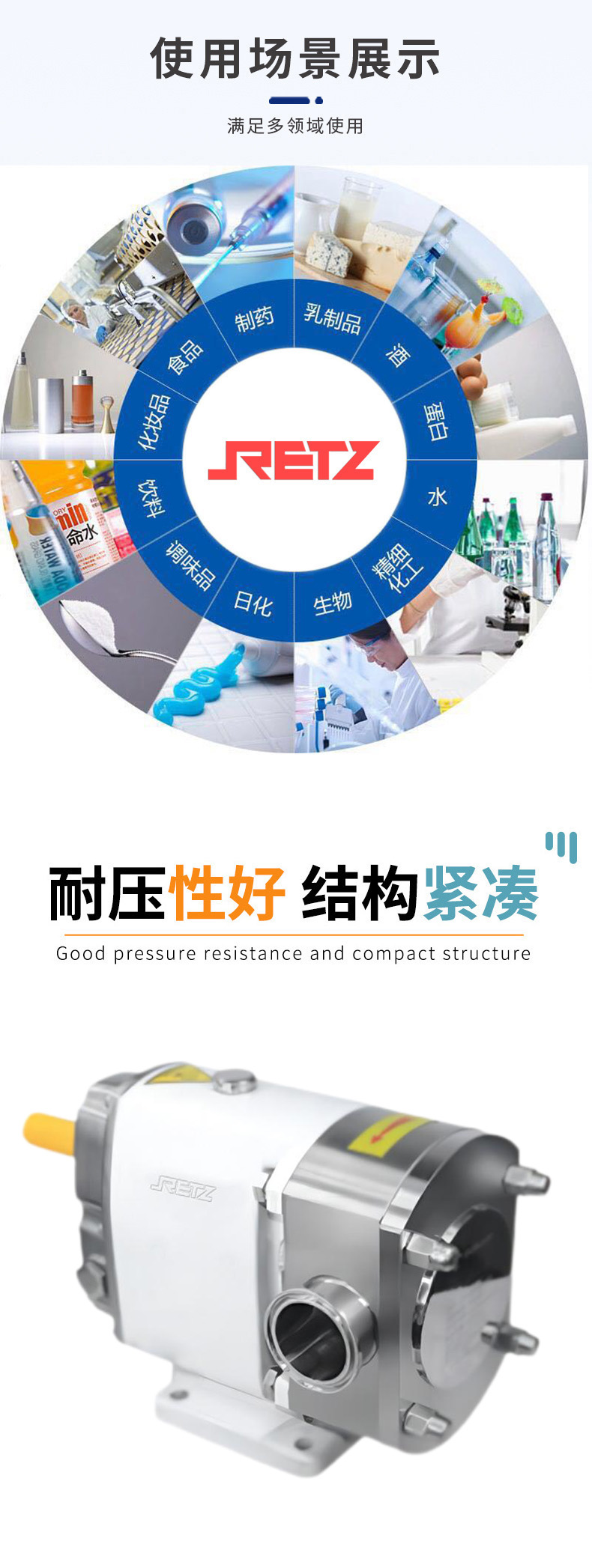 进口卫生级伺服电机驱动转子泵设计有多种配置,其中分为标准配置,全不锈钢配置,是一款正位移凸轮转子泵,是根据美国3A-02-11严格卫生要求设计的,非常适合于食品加工,饮料、果汁、乳制品、化妆品、制药工业等各种高粘稠和低粘稠物料的输送,也可以输送含有固体颗粒物料,还可以应用在CIP和SIP系统上。进口卫生级伺服电机驱动转子泵还具有其他容积泵所不具备的性能,如低脉冲现象、高压力、旋转双向可逆、灵活功能组合retz The imported sanitary servo motor driven rotor pump is designed with various configurations, including standard configuration and all stainless steel configuration. It is a positive displacement cam rotor pump designed according to the strict hygiene requirements of 3A-02-11 in the United States. It is very suitable for conveying various high and low viscosity materials such as food processing, beverages, juice, dairy products, cosmetics, pharmaceutical industries, and can also transport materials containing solid particles, It can also be applied to CIP and SIP systems. This pump also has performance that other volumetric pumps do not have, such as low pulse phenomenon, high pressure, reversible rotation, and flexible functional combinations