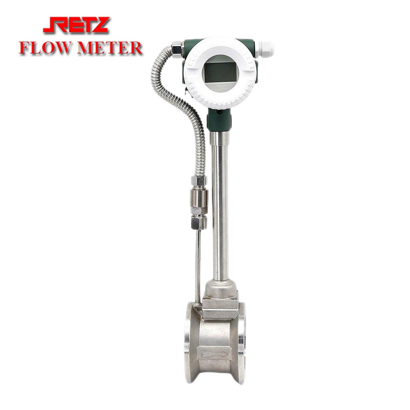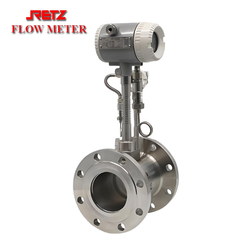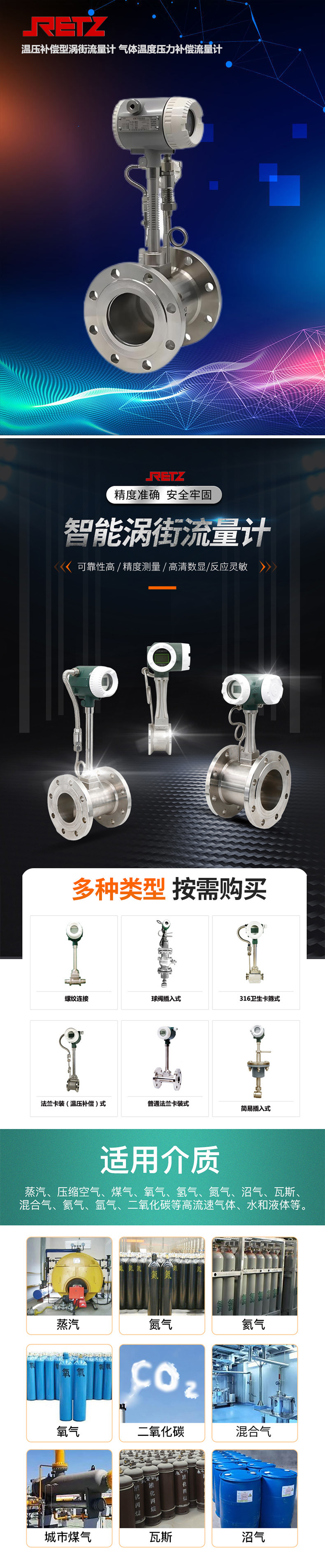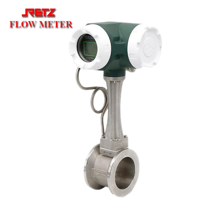 RETZ涡街流量计是采用压电应力式传感器,性能可靠性高,可在-20℃~+350℃的流体温度范围内工作。工作压力损失较小,量程范围宽,对饱和蒸汽测量量程比可达30比1,涡街流量计测量技术成熟的产品。具备了模拟标准信号、数字脉冲信号输出,可以与计算机等数字系统配套使用,是一种比较理想的测量仪器。广泛用于工业管道介质流体的流量测量,如各种气体、液体、蒸气等多种介质,精度高,在测量流体体积流量时不受流体密度、压力、温度、粘度等参数的影响,可靠性高,维护量小,能长期稳定。