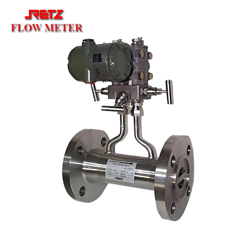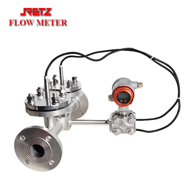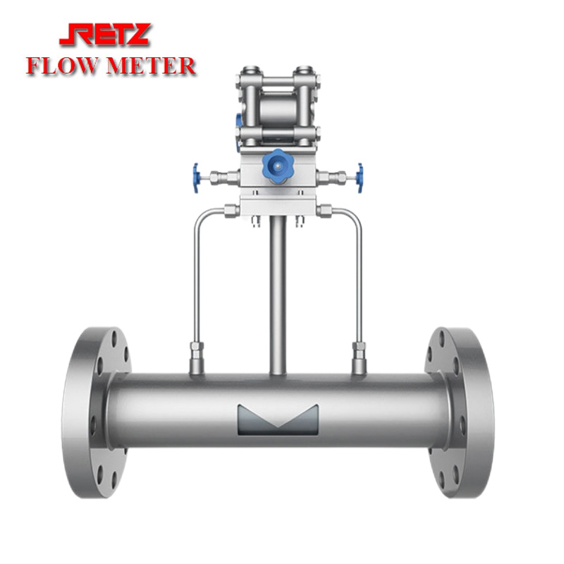RETZ楔式流量计是八十年始开始逐步走向实用的一种新型流量计,其检测件是一个V字形楔块(又称楔式节流件),它的圆滑顶角朝下,这样有利于含悬浮颗粒的液体或粘稠液体顺利通过,不会在节流件上游侧产生滞流。因此特别适合在石油、化工等行业中用于体积流量和质量流量的测量