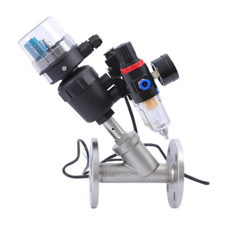 气动执行机构接收控制信号,驱动阀芯运动,实现流体通断或流量调节;角座阀体是阀门的核心部件,负责实现对流体的导向和截流;反馈传感器实时监测阀芯的运动状态,将信号反馈给控制系统,形成闭环控制回路。通过这种反馈机制,系统能够根据实际情况进行调整,确保流体的控制。