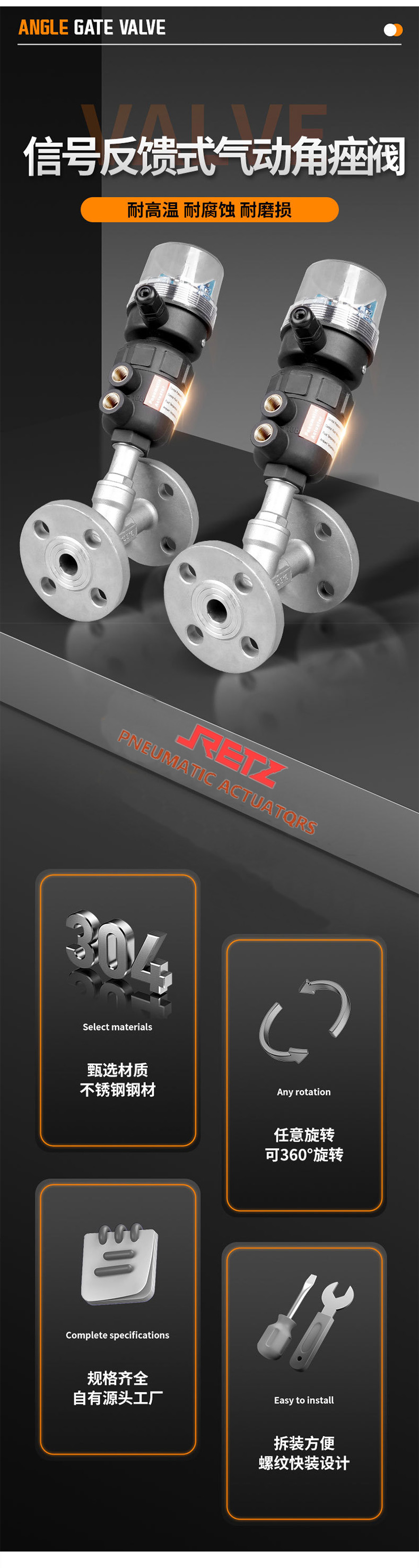 信号反馈气动角座阀利用信号开关检测阀门开关状态,并传导至控制台。