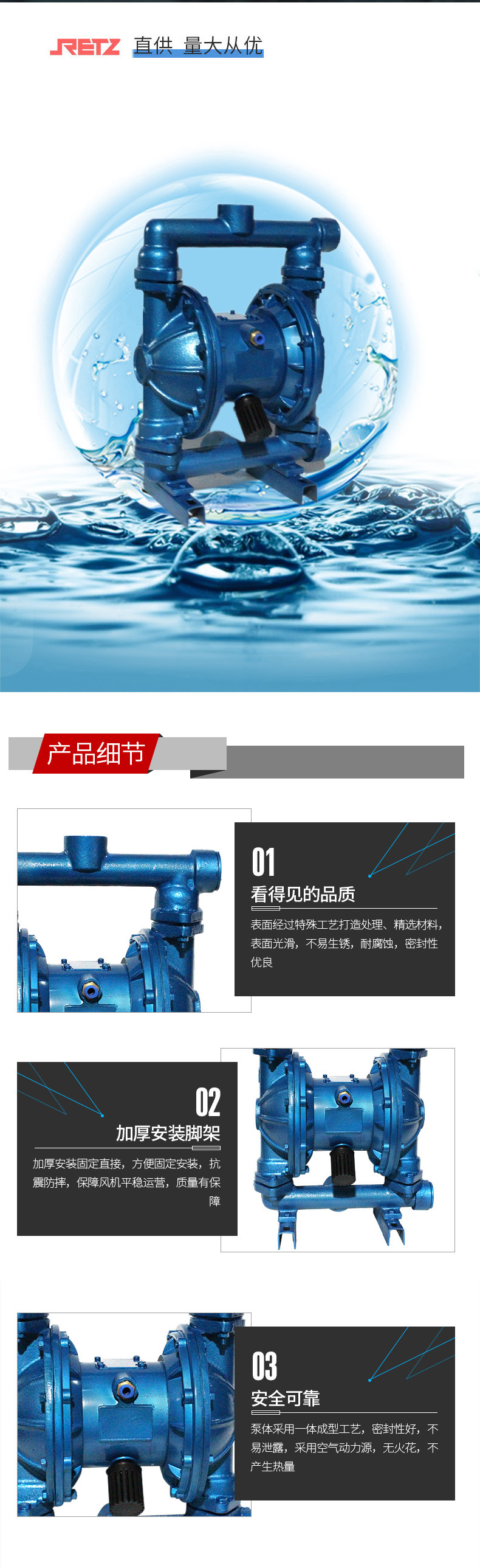 small compress air consumption,lower air leakage;according tothe size of the pump,the throttle ring and u-cup are designed toreduce the air consumption