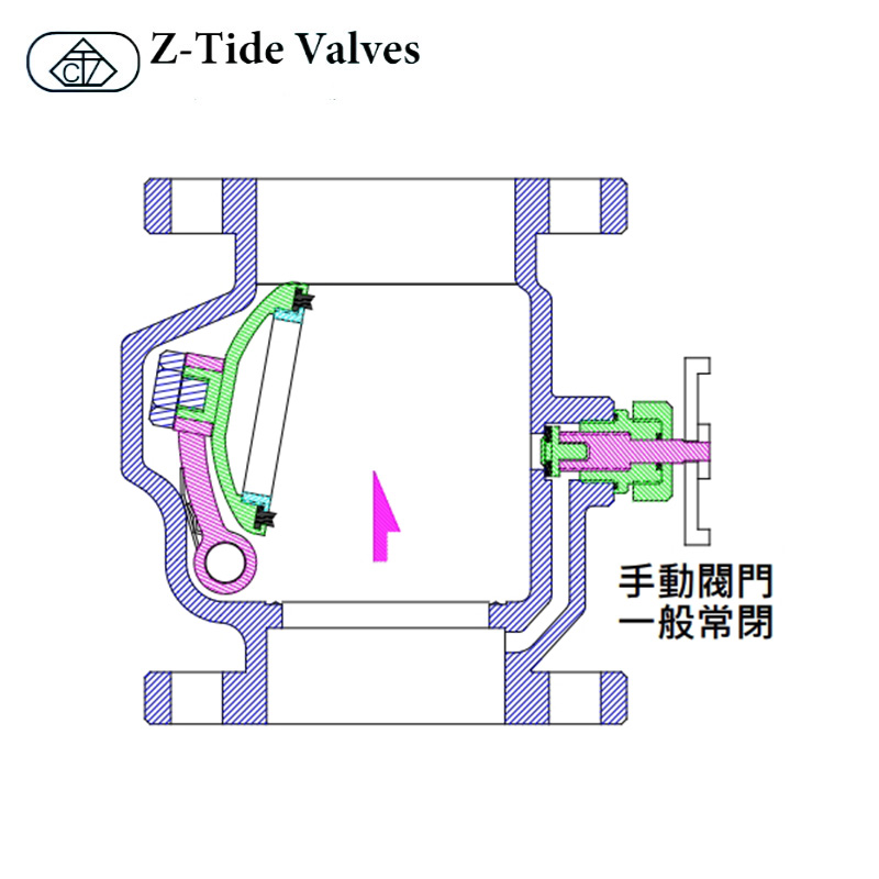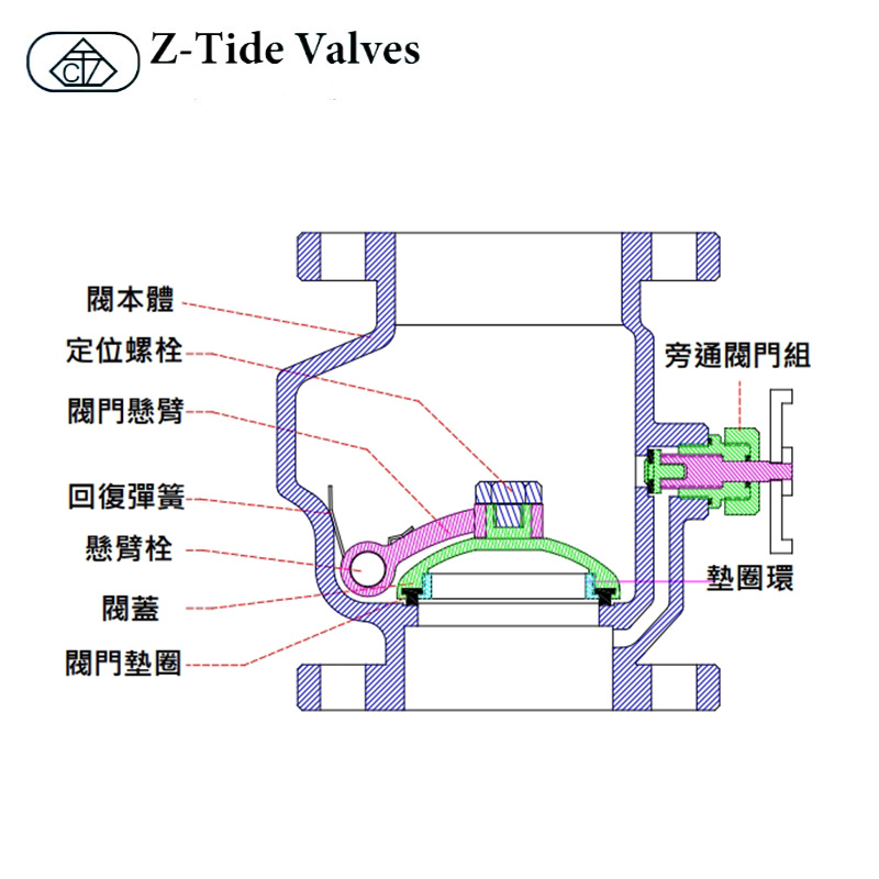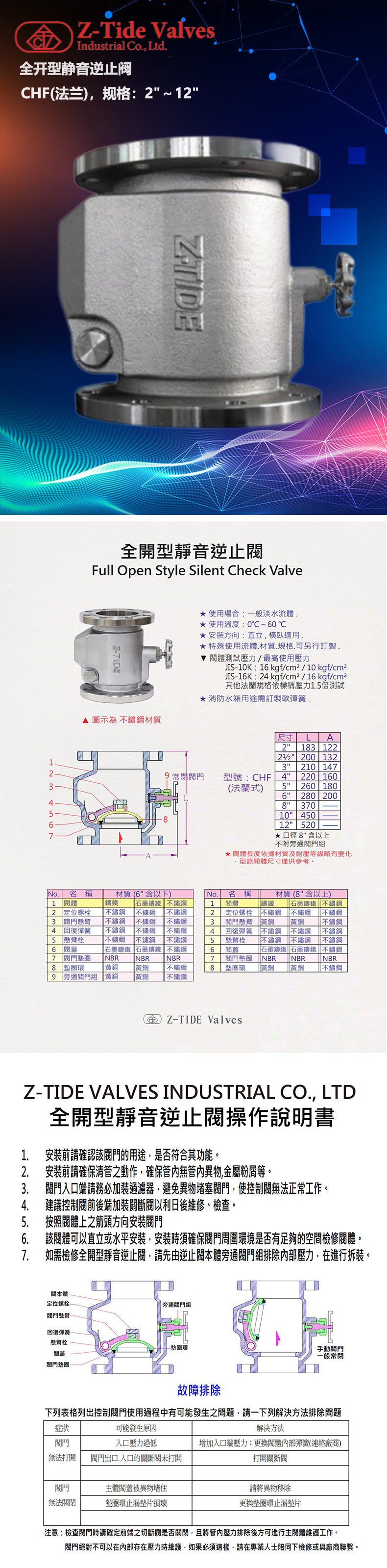 2.全开型静音逆止阀,採圆拱形阀门盖设计,在承受流体高压场合,以金属对金属的方式契合,经材料力学计算与流体压力模型测试,表现优异。