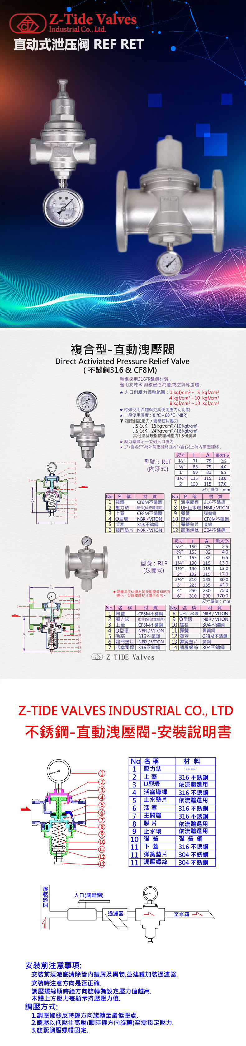 整组採用316不锈钢材质,适用于水、酸硷性或油类等流体。