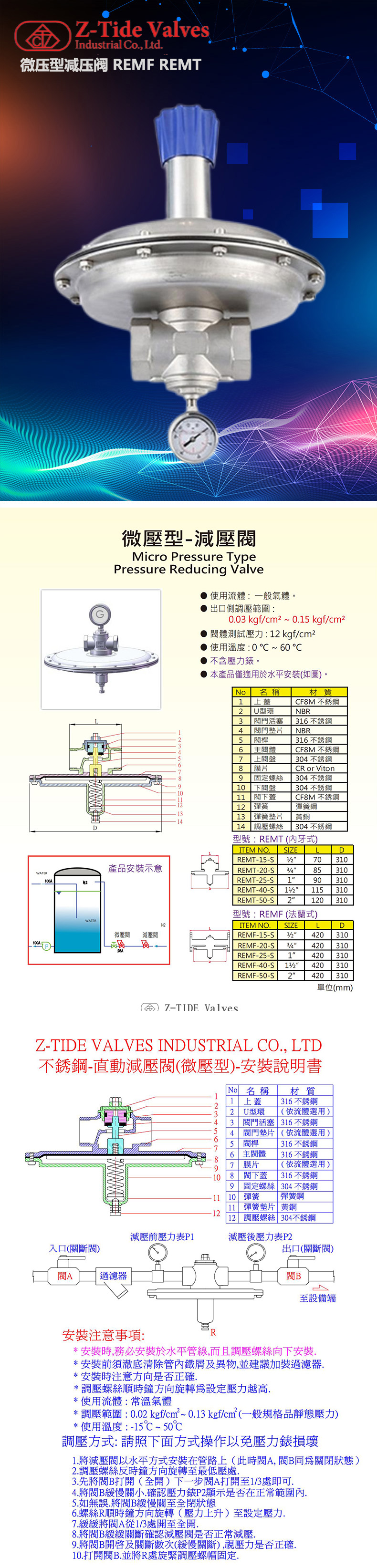 调压范围:0.03 kgf/cm2~0.15 kgf/cm2