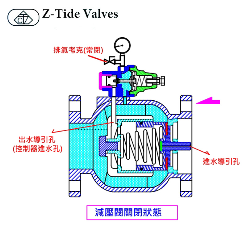 减压阀安装于管线,不因入口压力高低不稳定而造成出口端压力上升。