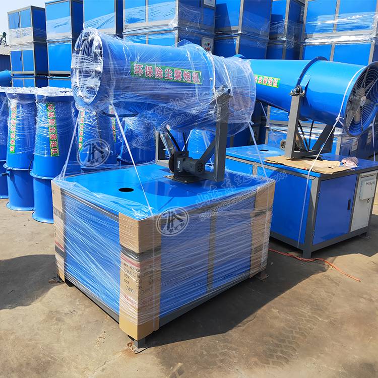 该产品风力强劲、射程高(远)、穿透性好,可以实现精量喷雾,雾粒细小,能快速将矿区堆场尘埃抑制降沉,工作效率高、速度快,其覆盖面积远远大于其它抑尘喷洒设备;