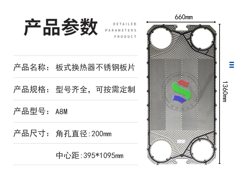 代加工Alfa阿法板式换热器板片A8M不绣钢板式冷却器供暖换热机组配件