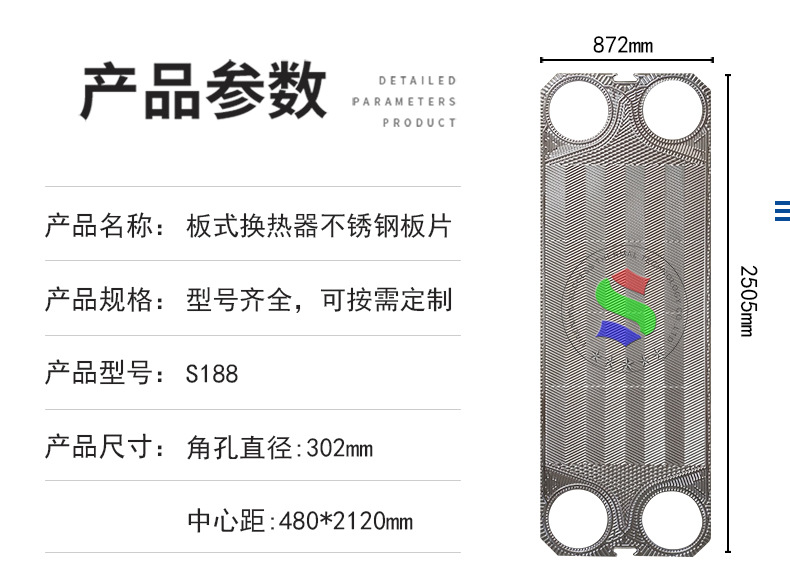 桑德斯S188换热器板片304不绣钢板式冷却器供暖设备配件
