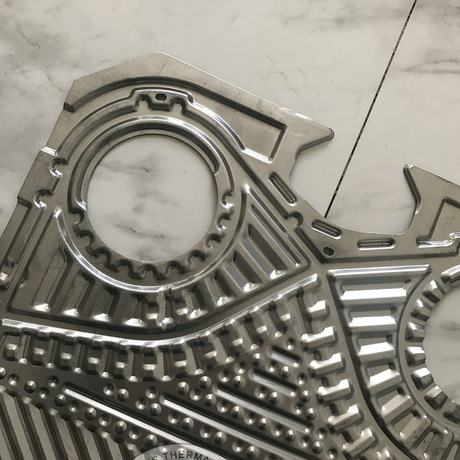 板式换热器板片是板式换热器的主要换热部分,板片需要定期清洗及更换。可拆卸板式换热器是由一系列具有一定波纹的金属片叠装并用橡胶密