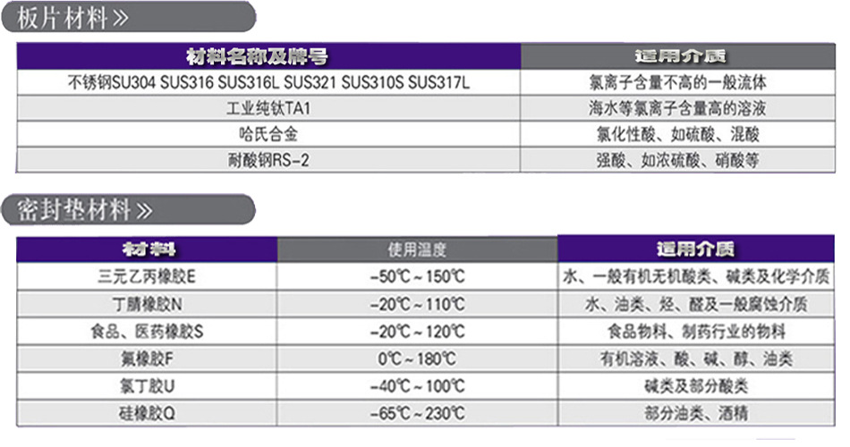 板片材质:不锈钢 304/316L