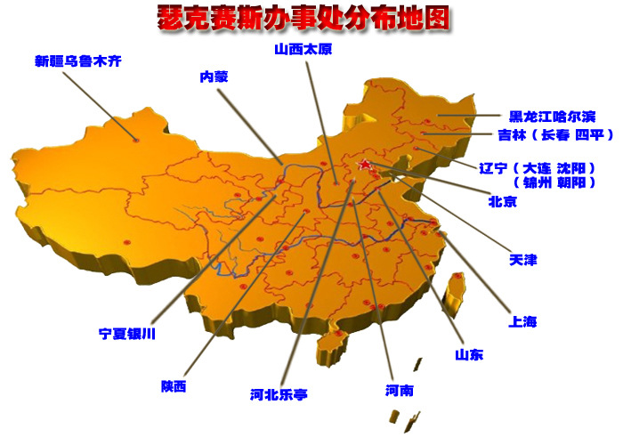 瑟克赛斯公司旗下售前售后服务办事处全国范围内20余个地点,沈阳办事处、吉林四平办事处、黑龙江哈尔滨办事处、牡丹江办事处、新疆乌鲁木齐分公司、宁夏银川办事处、北京办事处、天津办事处、河北乐亭办事处、河南郑州分公司、山东济南办事处、山西太原办事处、上海办事处。