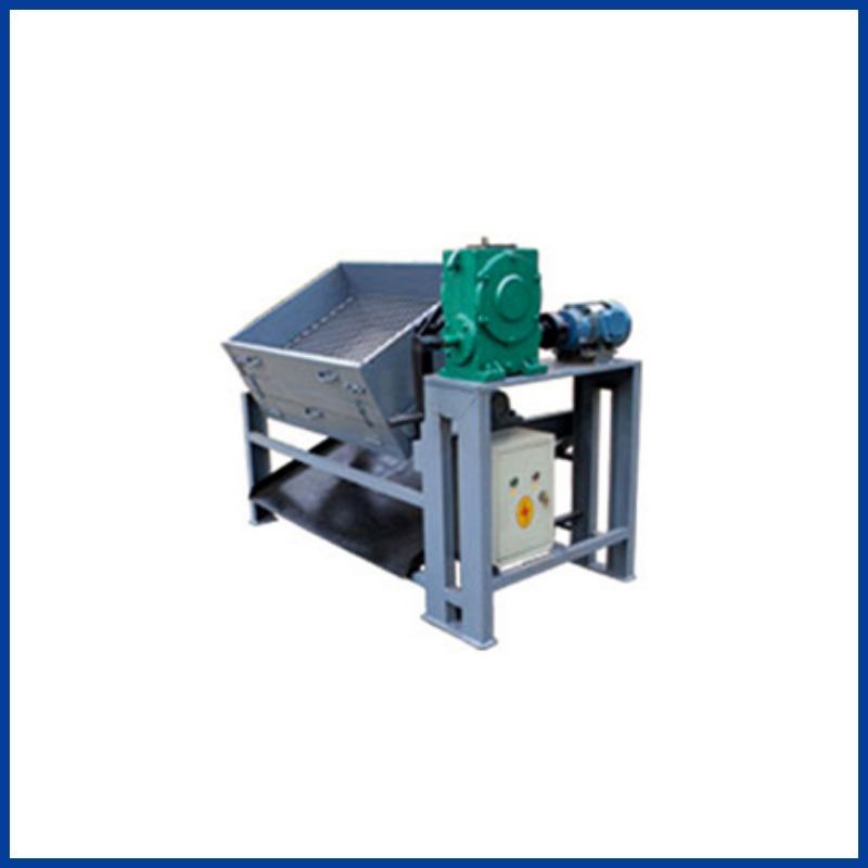 该机由机架、动力部分、减速部分、电器部分、筛分部分等组成。机架由角铁等钢结构焊接而成,它起到支撑部件的作用。当电机启动后,通过对轮传动,带动减速机转动,使输出转速符合要求。在曲拐的作用下,使筛分部分工作。当达到设定的时间后,机器自动停止。打开卸料装置,使物料流入料斗内。完成一个操作过程。