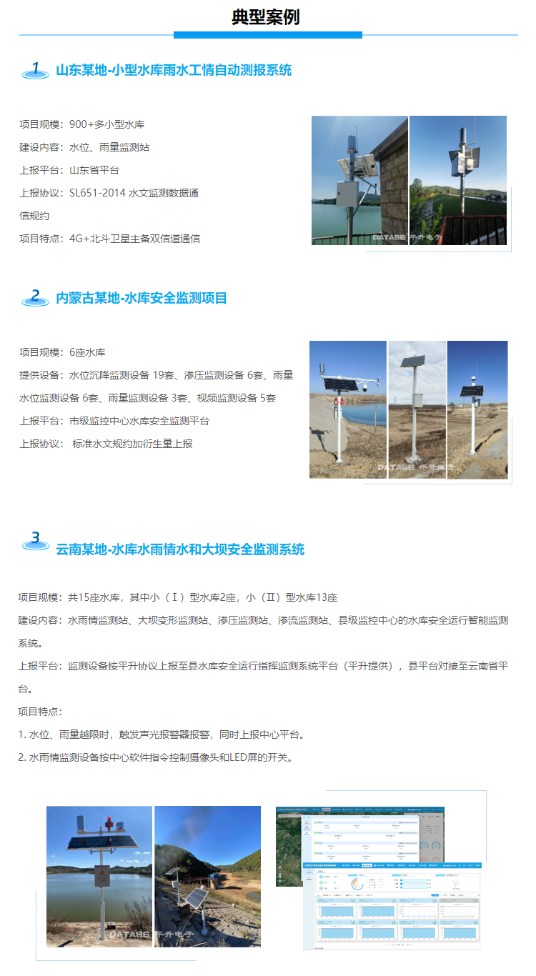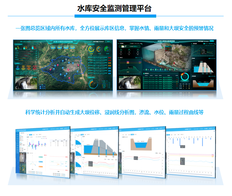 平升电子水库监测智能化管理系统 水库水位监测系统 大坝安全监测设备厂家 水库动态监测预警系统包含雨水情自动测报、大坝安全监测、视频监控、闸门监控和水库安全监测管理平台软件。