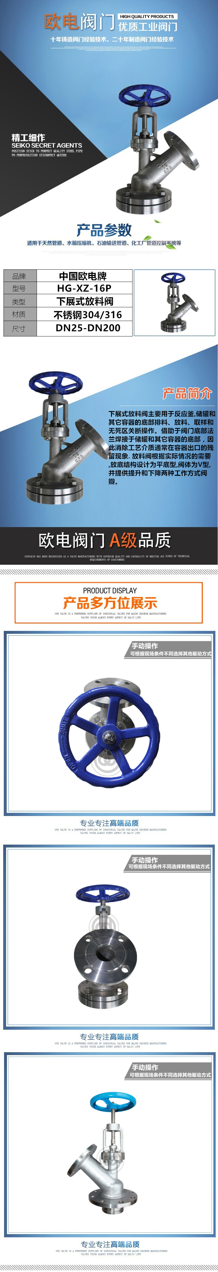 下展式放料阀适用介质如水、丙酮、酒精、氨、碳酸钡、苯(WCB材质的zui低用温度为-29℃,zui高温度为425℃。)