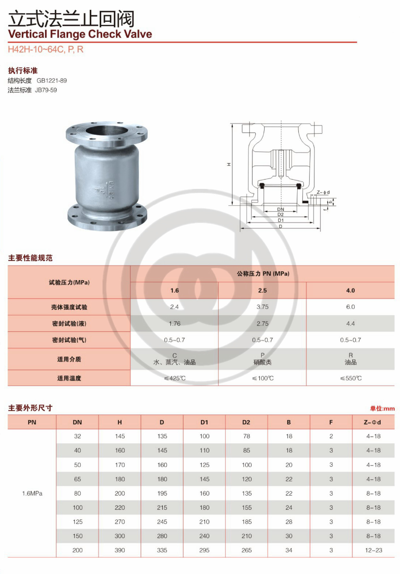 AH42B氨用止回阀严格按氨用阀门标准设计制造,阀瓣沿着中心定位作升降运动 , 密封面采用巴氏合金或四氟聚乙烯,摩擦系数小,耐磨性能好,动作灵活可靠 ,密封性能优良。氨用止回阀适用于氨气或液氨管道,起防止介质回流。