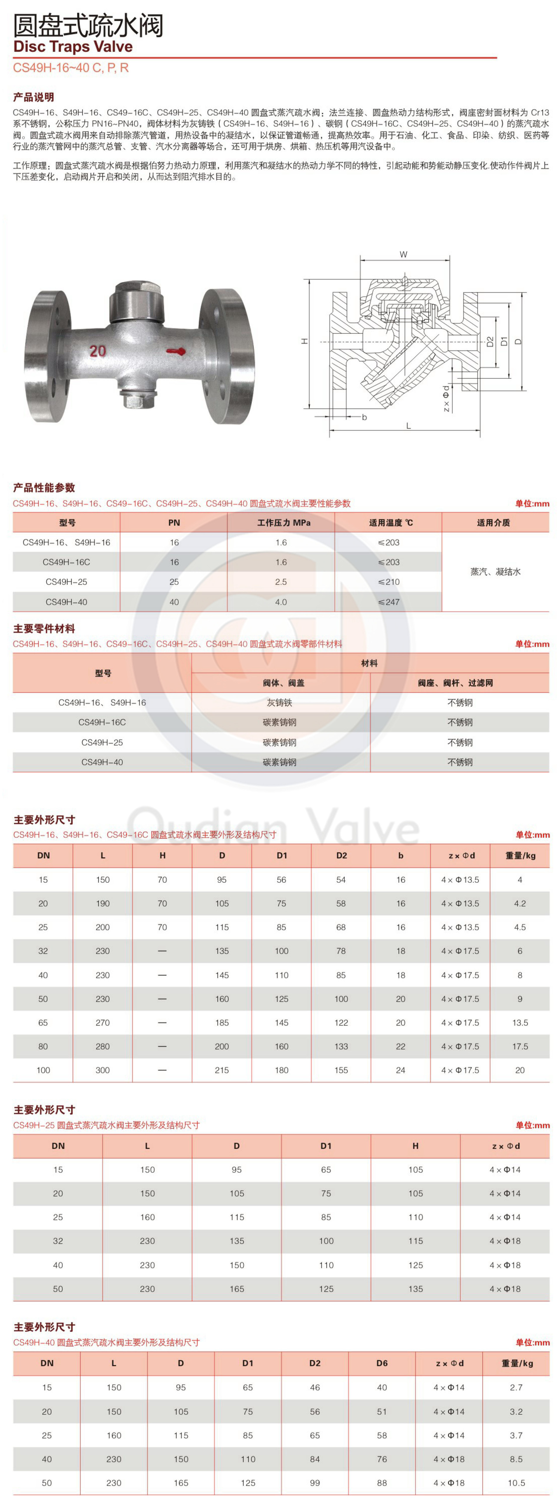 3、热动力式疏水阀可用于高压和过热蒸汽,抗水锤和震动,不锈钢结构可抗冷凝水腐蚀。
