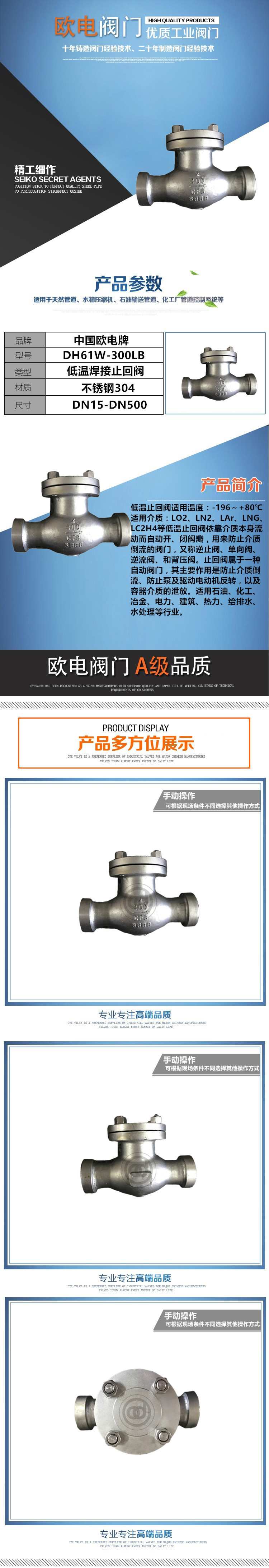 低温焊接止回阀 DH61W-150LB/300LB/600LB依靠介质本身的流动而自动开、闭阀瓣,防止介质倒流。低温焊接止回阀适用于甲烷、液态天然气、乙烯、二氧化碳、液氧、液氨、液氮、液氢等低温截止阀。低温阀门严格控制材料的化学成分及低温冲击韧性等力学性能指标。