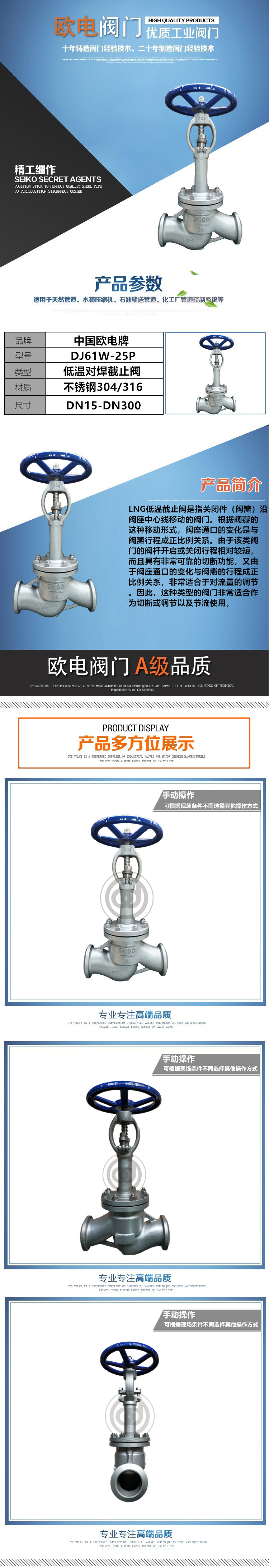 欧电阀门集团生产的低温截止阀 温度范围 -46℃- +200℃ -100℃- +200℃ -196℃-200℃ -230℃- +200℃