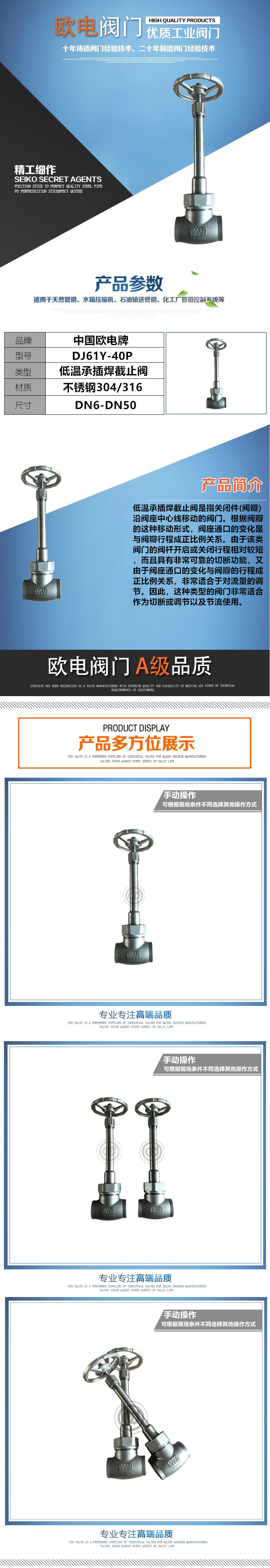 DN40低温焊接阀是指关闭件(阀瓣)沿阀座中心线移动的阀门。根据阀瓣的这种移动形式,阀座通口的变化是与阀瓣行程成正比例关系。由于该类阀门的阀杆开启或关闭行程相对较短,而且具有非常可靠的切断功能,又由于阀座通口的变化与阀瓣的行程成正比例关系,非常适合于对流量的调节。因此,这种类型的阀门非常适合作为切断或调节以及节流使用。
