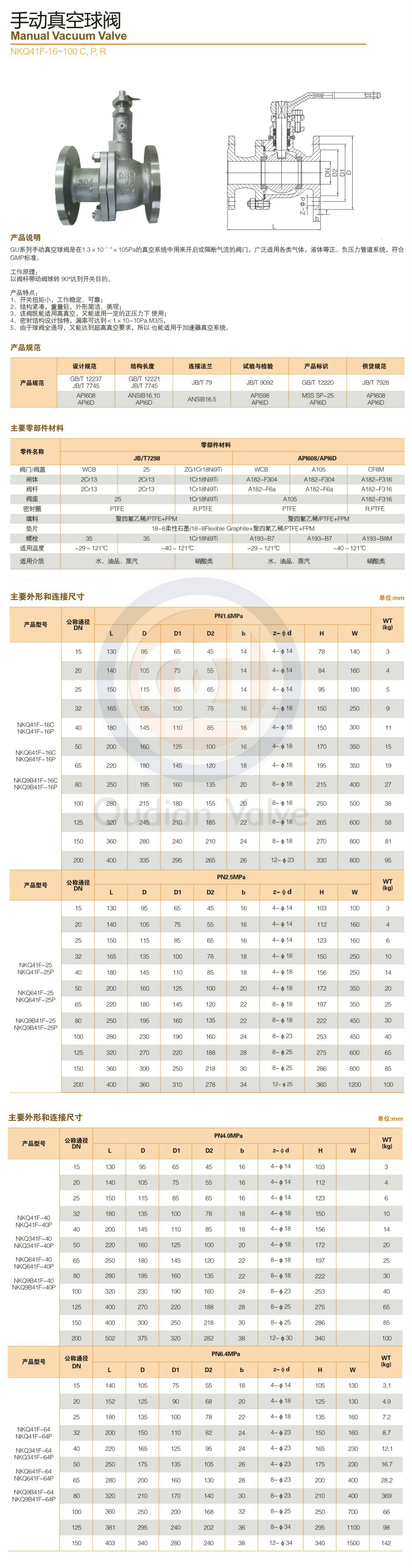 阀门为直通式,靠球面密封,因而既能用在真空状态下,也能在低压状态下使用,并可任意位置安装达到接通或切断真空系统管道路中的介质流。应用于真空、乳制品、酒业、生物工程、食品、制药、饮料、化妆品及化工领域。可选配反馈信号装置及电气阀门定位器。