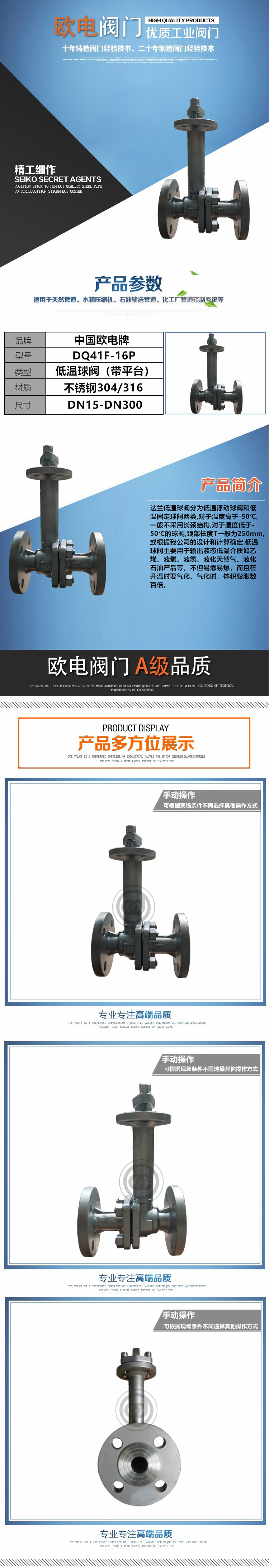 法兰低温球阀分为低温浮动球阀和低温固定球阀两类,对于温度高于-50℃,一般不采用长颈结构,对于温度低于-50℃的球阀,颈部长度T一般为250mm,或根据我公司的设计和计算确定.低温球阀主要用于输出液态低温介质如乙烯、液氧、液氢、液化天然气、液化石油产品等,不但易燃易爆,而且在升温时要气化,气化时,体积膨胀数百倍。