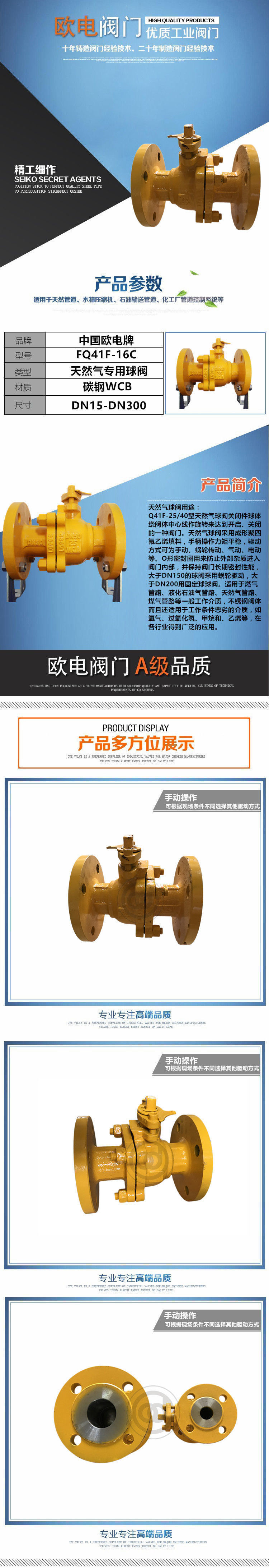 Q41F-25/40型天然气球阀关闭件球体绕阀体中心线作旋转来达到开启、关闭的一种阀门。天然气球阀采用成形聚四氟乙烯填料,手柄操作力矩平稳,驱动方式可为手动、蜗轮传动、气动、电动等。O形密封圈用来防止外部杂质进入阀门内部,并保持阀门长期密封性能,大于DN150的球阀采用蜗轮驱动,大于DN200用固定球球阀。适用于燃气管路、液化石油气管路、天然气管路、煤气管路等一般工作介质,不锈钢阀体而且还适用于工作条件恶劣的介质,如氧气、过氧化氢、甲烷和、乙烯等,在各行业得到广泛的应用。