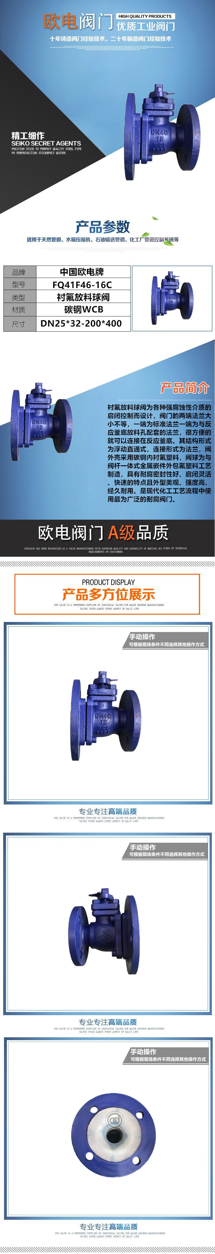 衬氟放料球阀FQ41F46-16C的工作原理是靠旋转阀瓣来使阀门畅通或闭塞的,阀瓣和阀体内侧全部采用氟塑料衬塑工艺制成,其具有开关轻便,体积小,密封可靠,结构简单,维修方便,使用范围广等优点。
