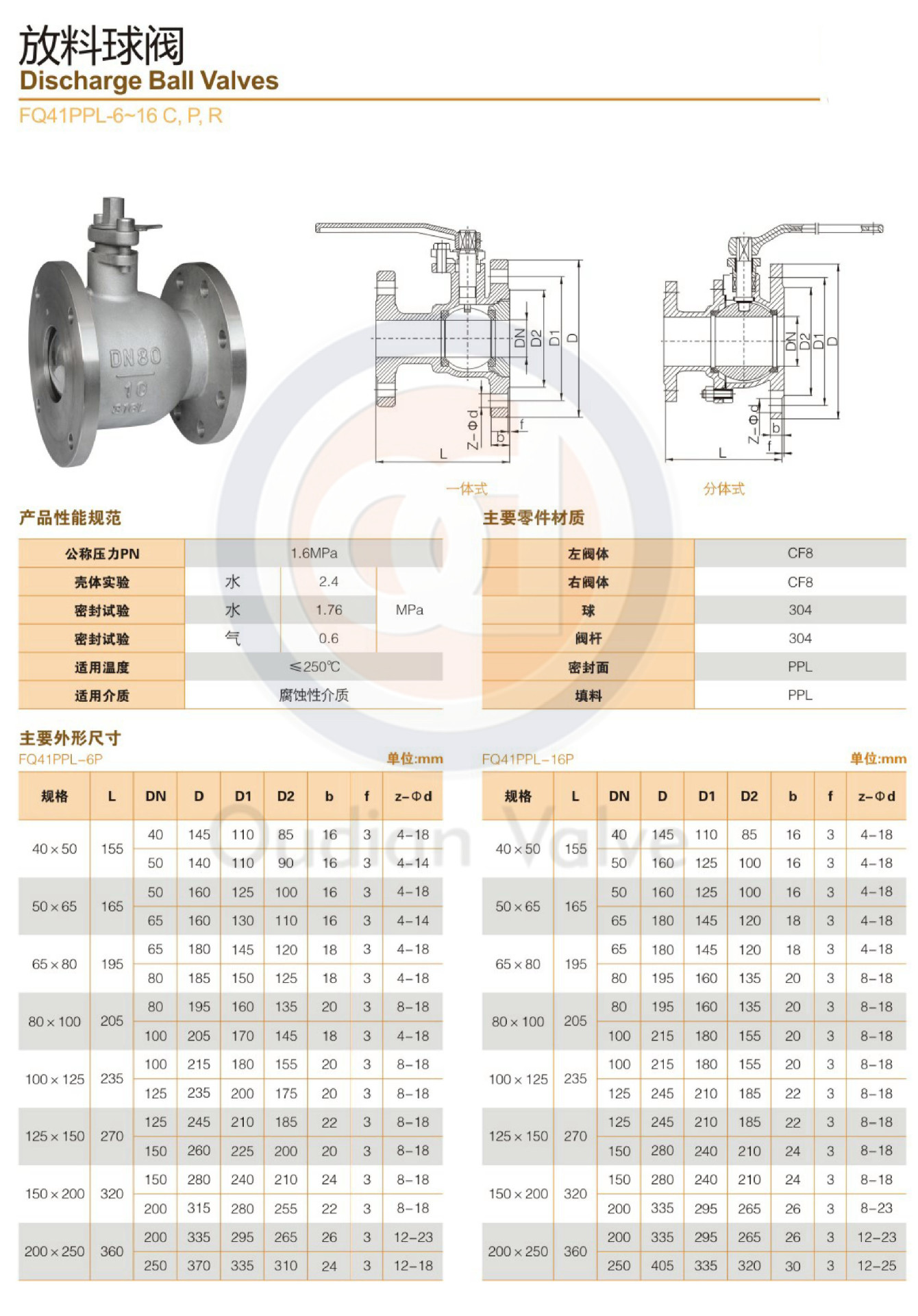 该阀是一种特殊结构的放料球阀,阀座与端面法兰距离近,物料滞留少,结构紧凑,密封性能优越,用于精细化工、制药、化工行业反应锅上,也可用在细软颗粒介质输送。放料球阀采用PPL密封材料,更具耐磨,是牙膏行业真空制膏锅放料的理想产品。