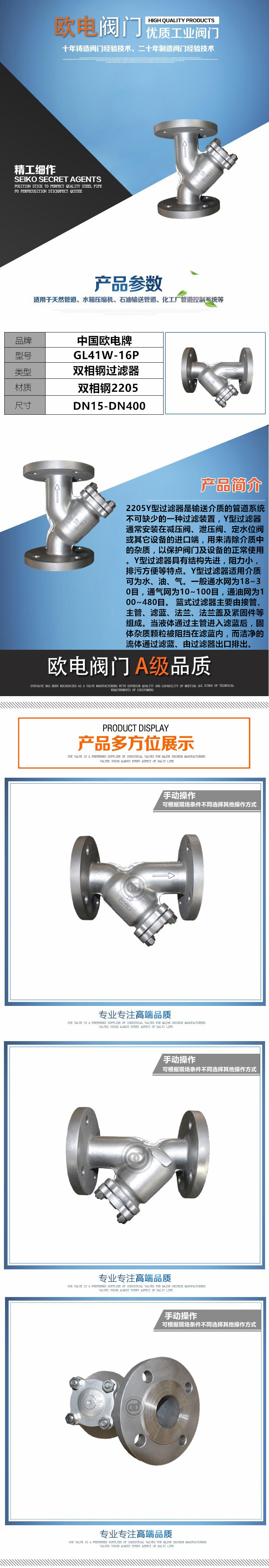 2205Y型过滤器双相钢,双相不锈钢2205合金是由21%铬,2.5%钼及4.5%镍氮合金构成的复式不锈钢。它具有高强度、良好的冲击韧性以及良好的整体和局部的抗应力腐蚀能力。