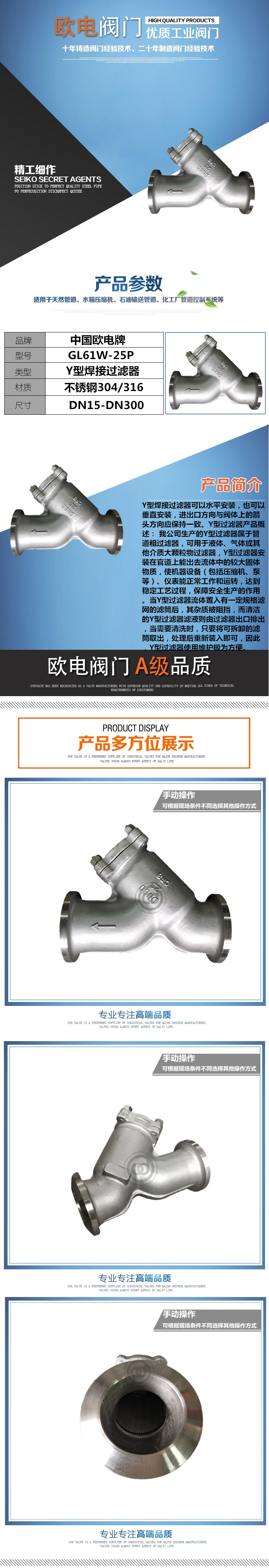 产品名称:Y型焊接过滤器产品型号:GL61H公称压力:1.0-2.5Mpa公称通径:DN150-DN1200适用介质:清水使用温度:0-80度法兰标准:GB/T17241.6GB/9113试验标准:GB/T13927 AP1598
