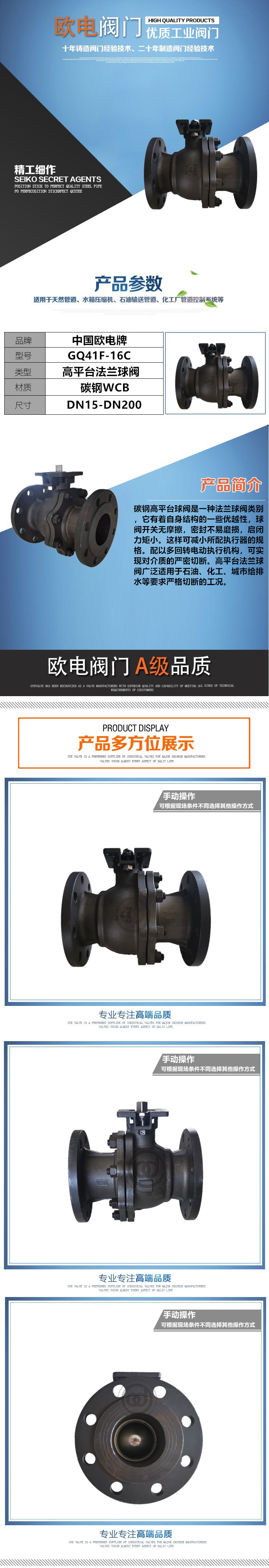 3、可在高平台法兰球阀顶部、底部安装手动操作机构。