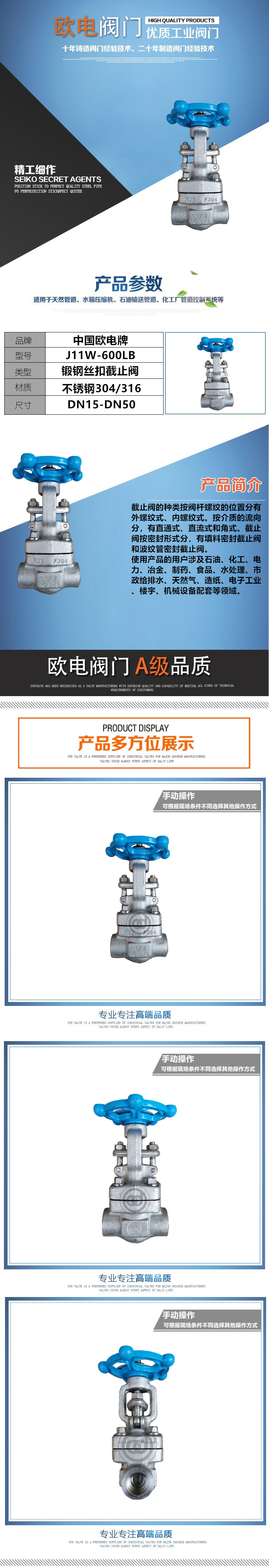 3、介质的流向应与阀体所示箭头方向一致。 锻钢丝扣截止阀技术指标: