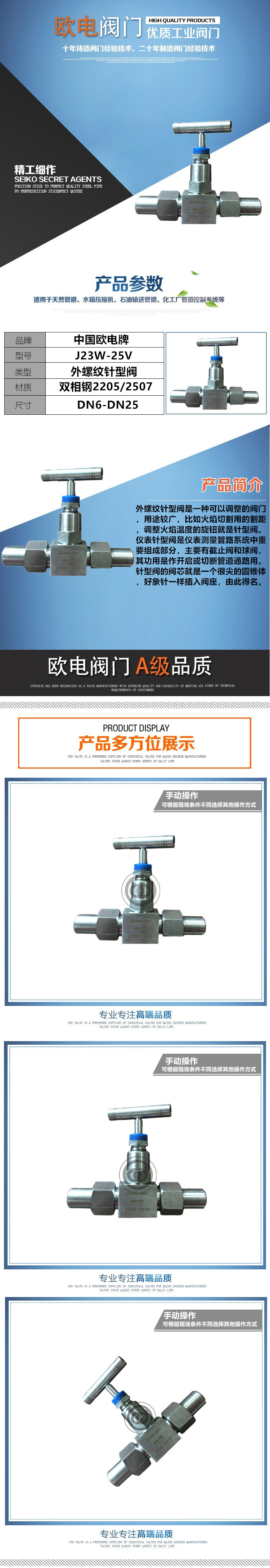 2205不锈钢焊接针型阀J23W-25V针形截止阀