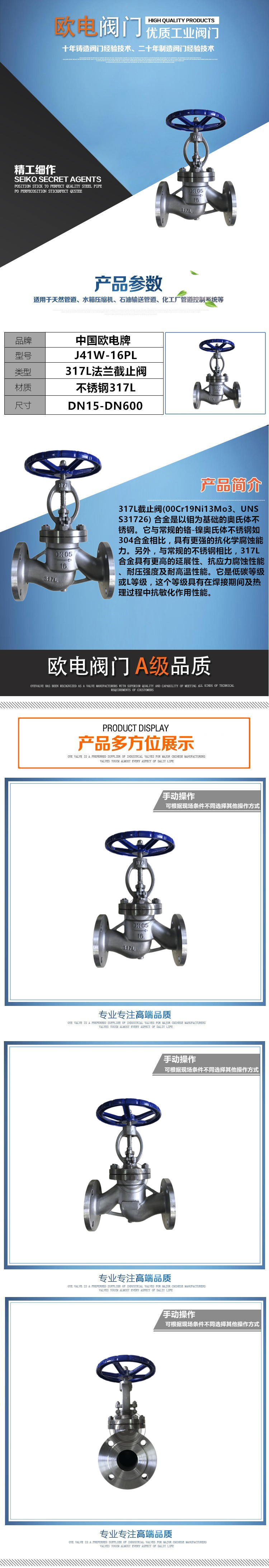 317L不锈钢截止阀的闭合原理是,依靠阀杠压力,使阀瓣密封面与阀座密封面紧密贴合,阻止介质流通。截止阀只许介质单向流动,安装时有方向性。截止阀的结构 长度大于闸阀,同时流体阻力大,长期运行时,密封可靠性不强。
