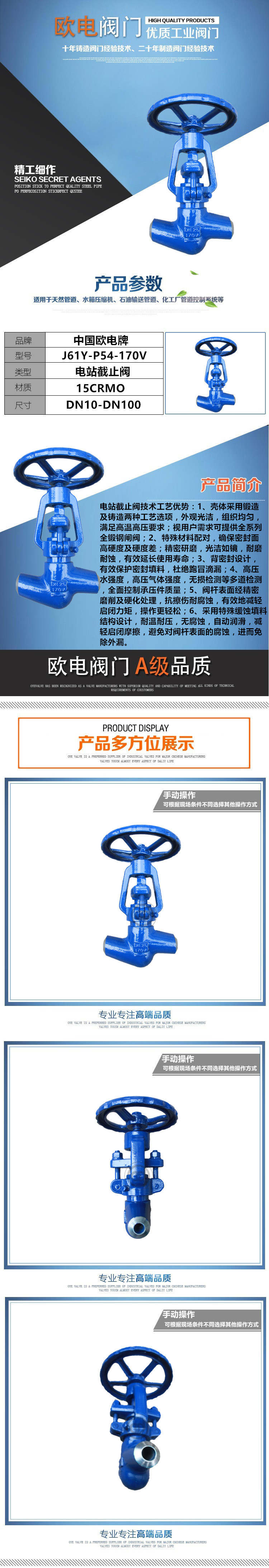 电站截止阀适用于Class1500~3500Lb、工作温度-29~570℃的石油、化工、火力电站等各种工况的管路上切断或接通介质。适用介质为:水、油品、蒸汽等非腐蚀性介质。