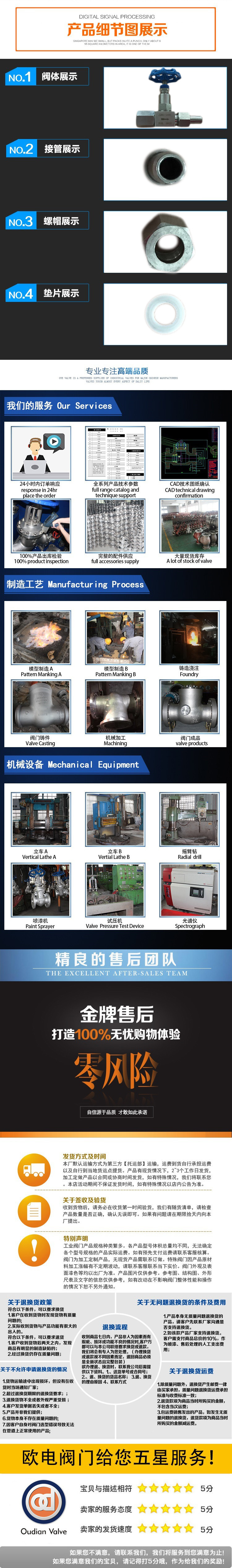 针型阀形比其他类型的阀门能够耐受更大的压力,密封性能好,所以一般用于较小流量,较高压力的气体或者液体介质的密封.针型阀形与压力表配合使用是合适的了.一般的针型阀形都做成螺纹连接。公称压力:PN2.5 PN4 PN6.4 PN16 PN32Mpa 公称通径:DN5~DN25 适用介质:油﹑水﹑气等多种非腐蚀性或腐蚀性介质 适用温度:-20℃~+440℃ -70℃~-240℃ ≤540℃ ≤570℃等制造材料:20#﹑1Cr18Ni9Ti﹑304﹑316﹑316L﹑12Cr1Mov等