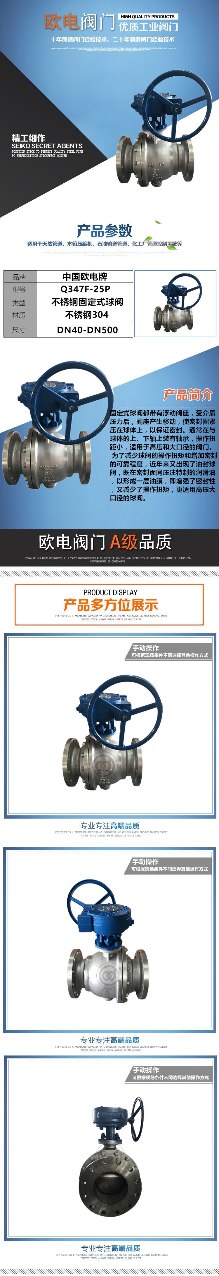 (2)操作省力:球体由上下轴承支撑,Q347F涡轮固定式软密封球阀减少摩檫(是提)消除了由于进口压力推动球体与密封座形成的巨大密封负荷而造成过大的扭矩。