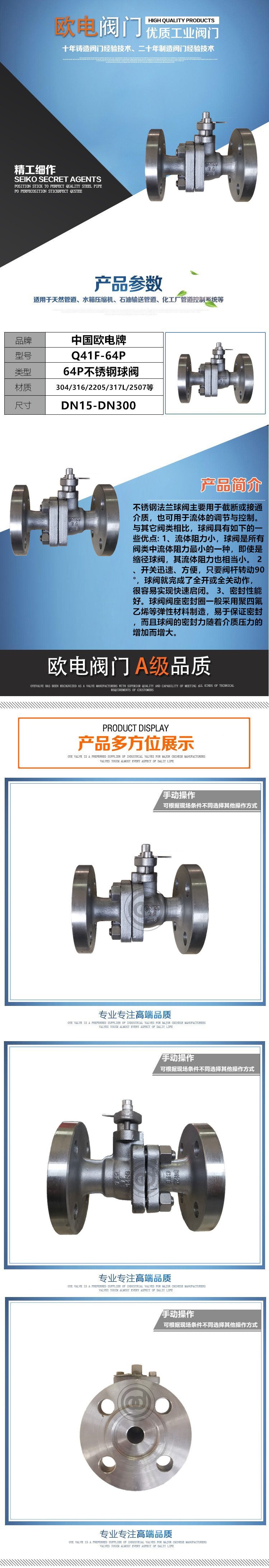 不锈钢高压球阀Q41F-64P主要规格:DN6,DN8,DN10,DN15,DN20,DN25,DN32,DN40,DN50,DN65,DN80,DN100