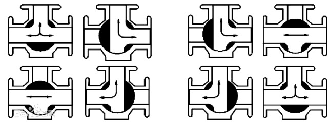 气动三通球阀关闭:失气或失电时,弹簧推动两活塞合拢向中心移动,输出轴顺时针方向转动