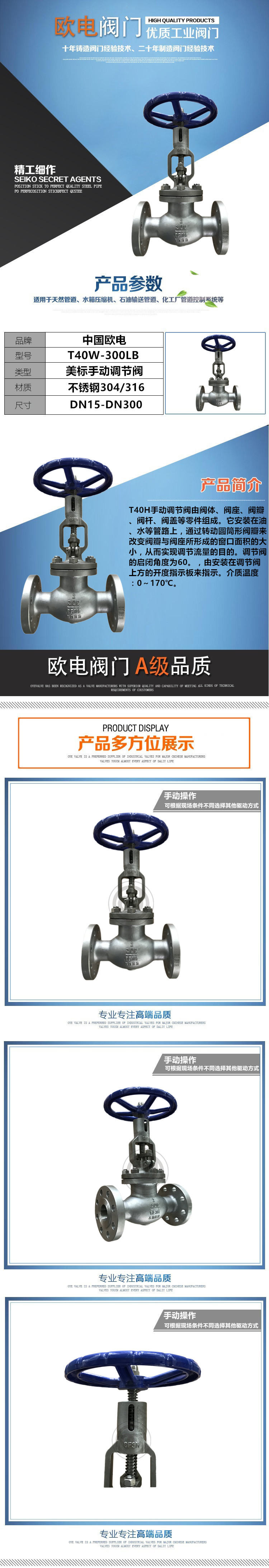 手动调节阀是管路流体输送系统中控制部件,它是用来改变通路断面和介质流动方向,具有导流、截止、调节、节流、止回、分流或溢流卸压等功能。 用于流体控制的阀门,从zui简单的截止阀到极为复杂的自控系统中所用的各种阀门,其品种和规格繁多, 阀门的公称通径从极微小的仪表阀大至通径达10m的工业管路用阀。阀门可用于控制水、蒸汽、油品、气体、泥浆、各种腐蚀性介质、 液态金属和放射性流体等各种类型流体的流动 ,阀门的工作压力可从0.0013MPa到1000MPa 的超高压,工作温度从-269℃的超低温到1430℃的高温。阀门的控制可采用多种传动方式, 如手动、电动、液动、气动、蜗轮、电磁动、电磁--液动、电--液动、气--液动、正齿轮、伞齿轮驱动等;可以在压力、温度或其它形式传感信号的作用下, 按预定的要求动作,或者不依赖传感信号而进行简单的开启或关闭,阀门依靠驱动或自动机构使启闭件作升降、滑移、旋摆或回转运动, 从而改变其流道面积的大小以实现其控制功能。
