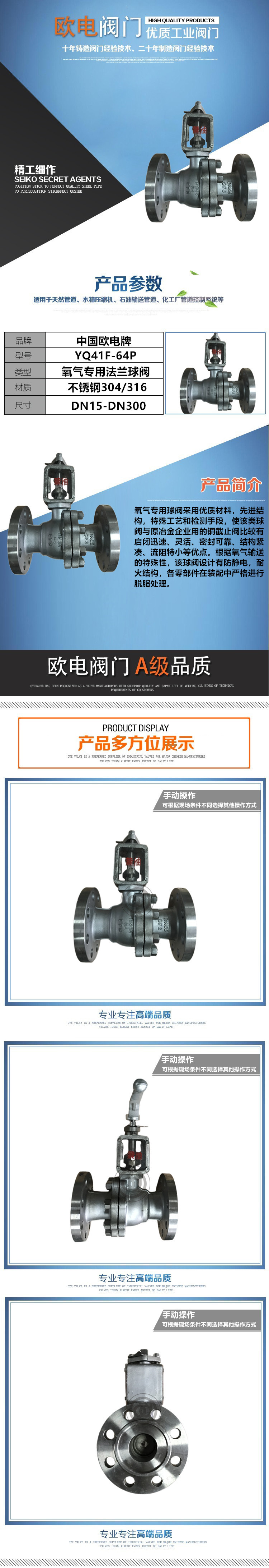 氧气球阀设计有防静电,耐火结构,各零部件在装配中严格进行脱脂处理。阀体等部件选用不锈钢并经酸洗、钝化,检查和试验用不含任何油脂的纯净自来水进行高压密封试验,用0.6Mpa气体做泄漏试验,阀门无泄漏;经上述特殊工艺处理,此类球阀不仅操作快速灵便,流阻小,安全可靠,而且使用寿命长(密封副冲刷小)。