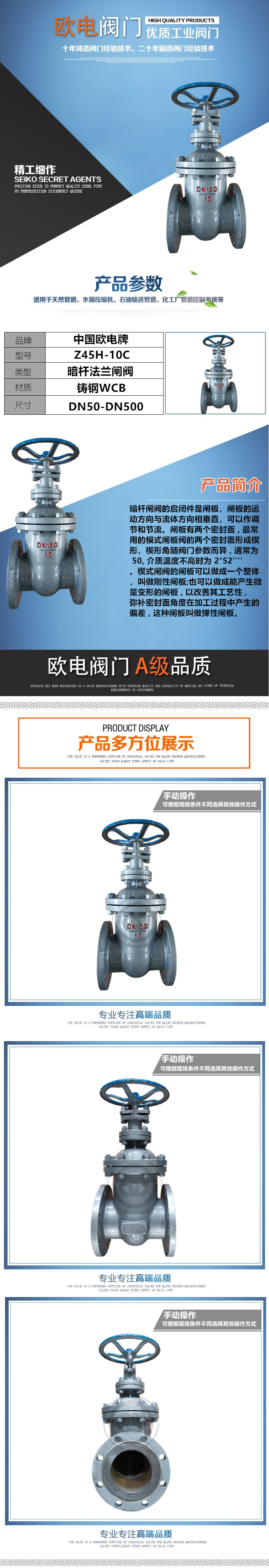 暗杆闸阀的启闭件是闸板,闸板的运动方向与流体方向相垂直,闸阀只能作全开和全关 , 不能作调节和节流。闸板有两个密封面 , zui常用的模式闸板阀的两个密封面形成楔形、楔形角随阀门参数而异 , 通常为 50, 介质温度不高时为 2°52'''' 。楔式闸阀的闸板可以做成一个整体,叫做刚性闸板;也可以做成能产生微量变形的闸板 , 以改善其工艺性 , 弥补密封面角度在加工过程中产生的偏差 , 这种闸板叫做弹性闸板。