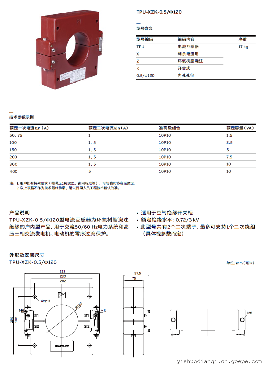 ABB剩余(零序)电流互感器LXZK-?200 型电流互感器为环氧树脂浇注绝缘户内型,用于交流50/60 Hz的线路中作高压三相交流发电机,电动机的零序过电流保护用。.