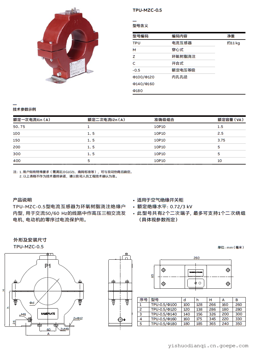 ■ 每台电压互感器每个绕组只满足“额定输出”栏内相应的一个准确级要求。如同时需满足几个准确级要求,订货时须加以说明电流互感器二次额定电流为5 A或1 A或按顾客要求生产