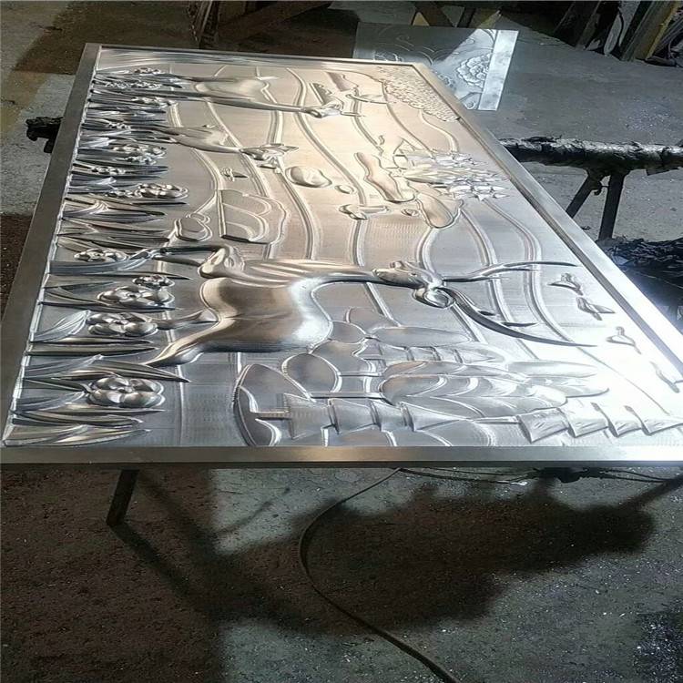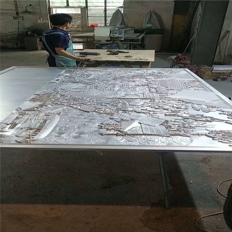 美术馆雕刻铝板壁画 浮雕铝板壁画,铝板平面上的雕凿与塑造,使浮雕可以综合雕塑与绘画的技术优势,保持手法上的多样性和多样化。二维空间中的缩减,陪衬主体形象的背景刻画或虚拟,使浮雕的塑造语言比之其它雕塑尤其是圆雕,具有更强的叙事性同时也不失一般雕塑的表现性。